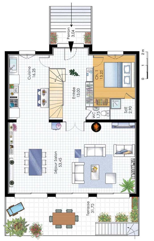 Maison : 205 m² ; garage : 24 m² ; terrasse : Option