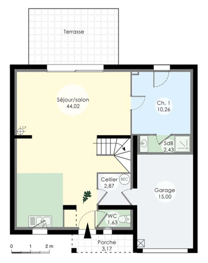 Astuce : un terrain de petite surface en centre-ville ou en lotissement pourra accueillir cette maison…!
